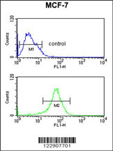 - DIO2 Antibody (Center) flow cytometric analysis of MCF-7 cells (bottom histogram) compared to a negative control cell (top histogram).FITC-conjugated goat-anti-rabbit secondary antibodies were used for the analysis.