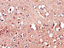 - Immunocytochemical analysis of paraffin-embeded LRRTM4 in human brain tissue using a LRRTM4 Polyclonal antibody (Product # PA5-113080) at a dilution of 1:100.