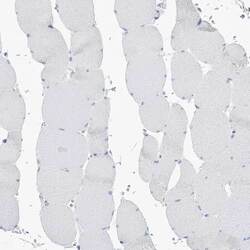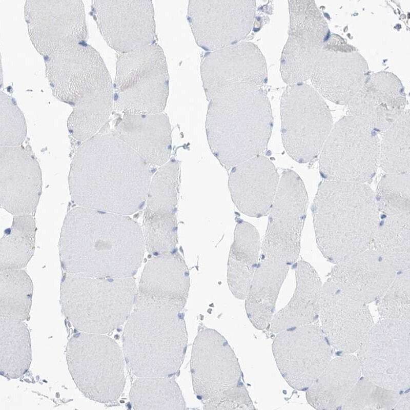 - Immunohistochemical staining of PSD4 in human skeletal muscle using PSD4 Polyclonal Antibody (Product # PA5-57029) shows low expression as expected.