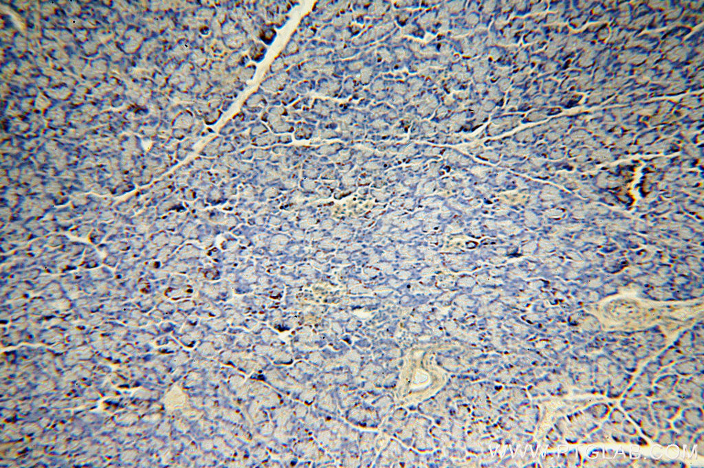 - Immunohistochemical of paraffin-embedded human pancreas using 19758-1-AP(SFT2D3 antibody) at dilution of 1:50 (under 10x lens)
