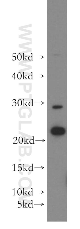 - Human liver tissue were subjected to SDS PAGE followed by western blot with 19758-1-AP (SFT2D3 antibody) at dilution of 1:300 incubated at room temperature for 1.5 hours.