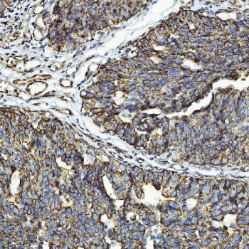 - IHC staining of FFPE human endometrial cancer tissue with CXCR7 antibody. HIER: boil tissue sections in pH8 EDTA for 20 min and allow to cool before testing.