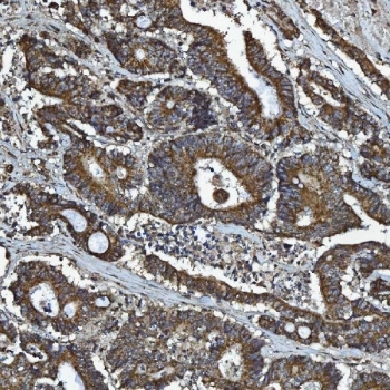 - IHC staining of FFPE human colon adenocarcinoma tissue with CXCR7 antibody. HIER: boil tissue sections in pH8 EDTA for 20 min and allow to cool before testing.