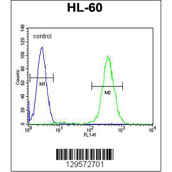 - RINL Antibody (N-term) (Cat. #OAAB08343) flow cytometric analysis of HL-60 cells (right histogram) compared to a negative control cell (left histogram).FITC-conjugated goat-anti-rabbit secondary antibodies were used for the analysis.