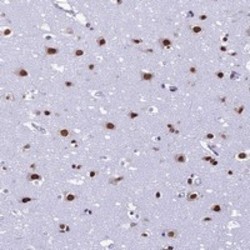 - Immunohistochemical staining of human cerebral cortex with PRAMEF12 polyclonal antibody (Cat # PAB24097) shows strong nuclear positivity in neuronal cells at 1:50-1:200 dilution.