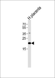 - Western Blot: C2orf74 Antibody [NBP2-32313] - Western blot analysis in human placenta tissue lysates (35ug/lane). This demonstrates the C2orf74 antibody detected the C2orf74 protein (arrow).