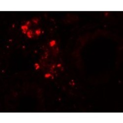 - Immunofluorescence of WDR92 in human testis tissue with WDR92 antibody at 20 ug/mL.