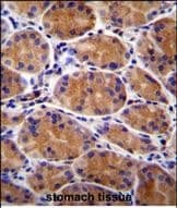 - Immunohistochemistry analysis of GIN1 in formalin fixed and paraffin embedded human stomach tissue. Samples were incubated with GIN1 polyclonal antibody (Product # PA5-71571) followed by peroxidase conjugation of the secondary antibody and DAB staining. This data demonstrates the use of this antibody for immunohistochemistry. Clinical relevance has not been evaluated.