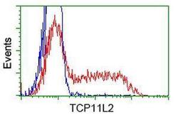 - HEK293T cells transfected with either RC207129 overexpress plasmid(Red) or empty vector control plasmid(Blue) were immunostained by anti-TCP11L2 antibody(GTX83517), and then analyzed by flow cytometry.