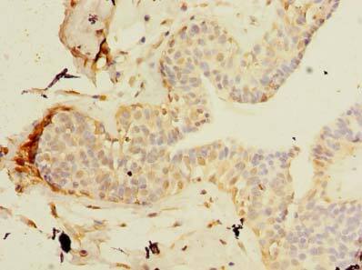 - Immunohistochemistry of paraffin-embedded human breast cancer using antibody at dilution of 1:100.