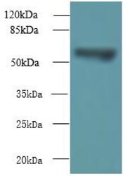 - Western blot. All lanes: TCP11L2 antibody at 1 ug/ml+ A549 whole cell lysate Goat polyclonal to rabbit at 1:10000 dilution. Predicted band size: 58 kDa. Observed band size: 58 kDa.