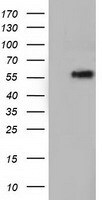 - HEK293T cells were transfected with the pCMV6-ENTRY control (Left lane) or pCMV6-ENTRY TCP11L2 (RC207129, Right lane) cDNA for 48 hrs and lysed. Equivalent amounts of cell lysates (5 µg per lane) were separated by SDS-PAGE and immunoblotted with anti-TCP1. Positive lysates LY407320 (100 µg) and LC407320 (20 µg) can be purchased separately from OriGene.