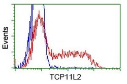 - HEK293T cells transfected with either RC207129 overexpress plasmid (Red) or empty vector control plasmid (Blue) were immunostained by anti-TCP11L2 antibody (TA501802), and then analyzed by flow cytometry.