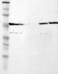 - Western blot analysis of antibody specificity using a routine panel composed of IgG/HSA-depleted human plasma and protein lysates from selected human tissues and cell lines.