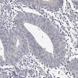 - Immunohistochemical analysis of GTSF1 in human Endometrium using GTSF1 Polyclonal Antibody (Product # PA5-58575) shows no positivity in glandular cells as expected.