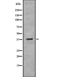 - Western blot analysis OR5T3 using HeLa whole cells lysates