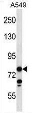 - CCDC13 Antibody (N-term) western blot analysis in A549 cell line lysates (35ug/lane).This demonstrates the CCDC13 antibody detected the CCDC13 protein (arrow).