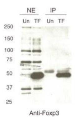 - Western Blot: FoxP3 Antibody [NB100-39002] - Detection of immunoprecipitated FOXP3 from HA-tagged FOXP3 transfected Jurkat T antigen cells.