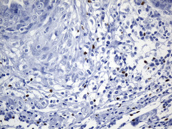 - Immunohistochemical staining of paraffin-embedded Carcinoma of Human lung tissue using anti-FOXP3 mouse monoclonal antibody.(Heat-induced epitope retrieval by 1mM EDTA in 10mM Tris buffer (pH8.5) at 120°C for 3 min, UM800140)(1:200)