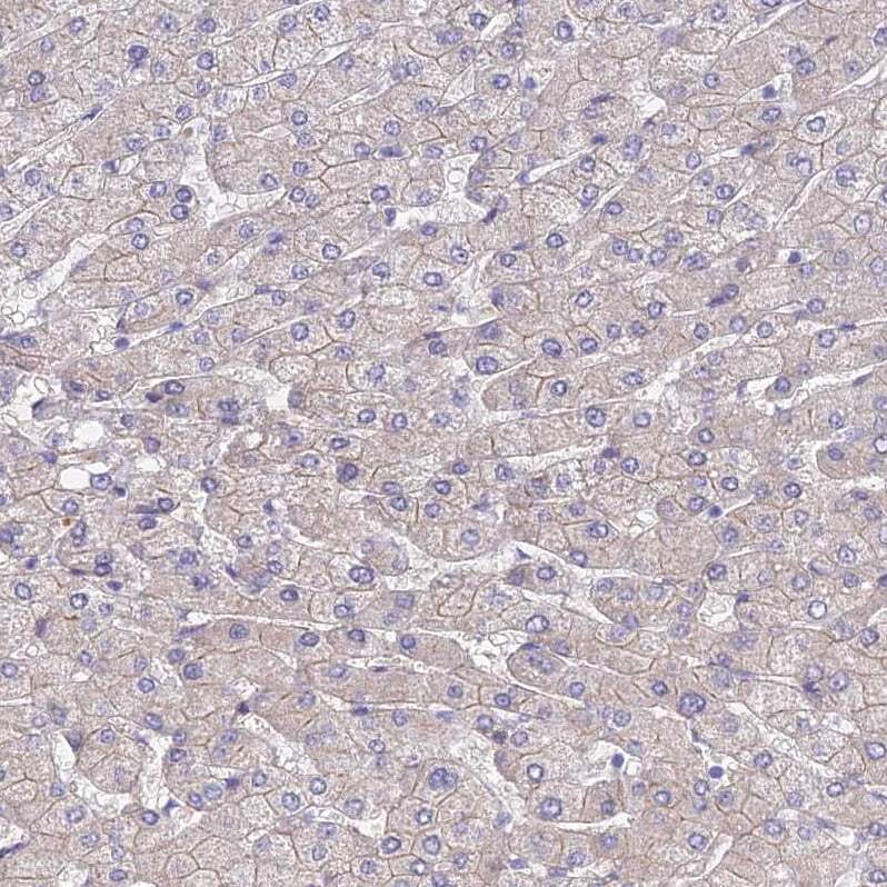 - Immunohistochemical analysis of ANKRD50 in human liver using ANKRD50 Polyclonal Antibody (Product # PA5-60585) shows very weak cytoplasmic positivity in hepatocytes.
