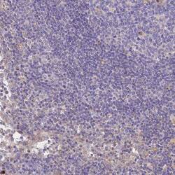 - Immunohistochemical analysis of ANKRD50 in human lymph node using ANKRD50 Polyclonal Antibody (Product # PA5-60585) shows no cytoplasmic positivity in germinal and non-germinal center cells.