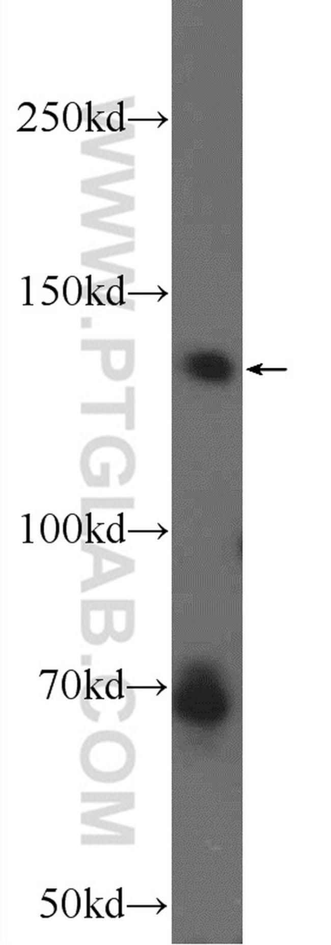 - HEK-293 cells were subjected to SDS PAGE followed by western blot with 24032-1-AP ( ANKRD50 Antibody) at dilution of 1:300 incubated at room temperature for 1.5 hours.