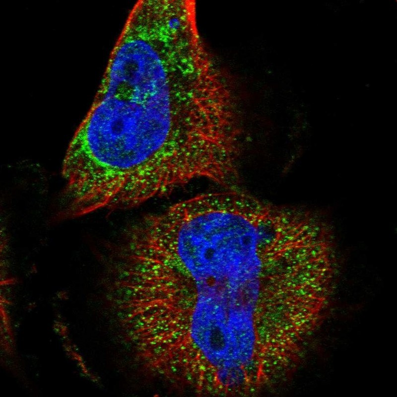 - Immunofluorescent staining of human cell line U-251 MG shows localization to cytosol.