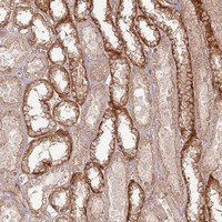- Immunohistochemical staining of human kidney with ZNF623 polyclonal antibody (Cat # PAB24322) shows distinct cytoplasmic positivity in distal tubules at 1:20-1:50 dilution.