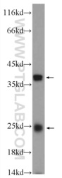 - rat liver tissue were subjected to SDS PAGE followed by western blot with 24331-1-AP( TMEM9B Antibody) at dilution of 1:1000