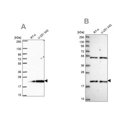 - Western Blot: KIAA1143 Antibody [NBP2-57324] - Analysis using Anti-KIAA1143 antibody NBP2-57324 (A) shows similar pattern to independent antibody NBP1-92051 (B).