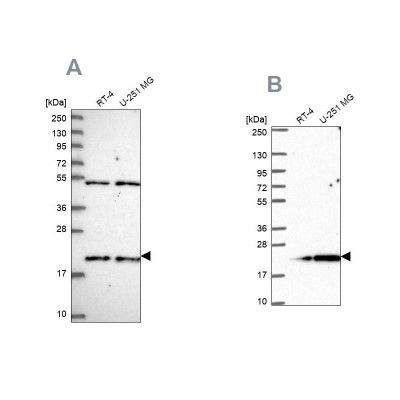 - Western Blot: KIAA1143 Antibody [NBP1-92051] - Analysis using Anti-KIAA1143 antibody NBP1-92051 (A) shows similar pattern to independent antibody NBP2-57324 (B).