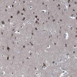 - Immunohistochemical analysis of CCDC34 in human cerebral cortex using CCDC34 Polyclonal Antibody (Product # PA5-58016) shows moderate nuclear and nuclear membrane positivity in neurons.