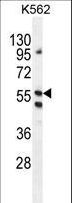 - LRIT1 Antibody western blot of K562 cell line lysates (35 ug/lane). The LRIT1 antibody detected the LRIT1 protein (arrow).