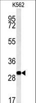 - Western blot of C3orf75 Antibody in K562 cell line lysates (35 ug/lane). C3orf75 (arrow) was detected using the purified antibody.
