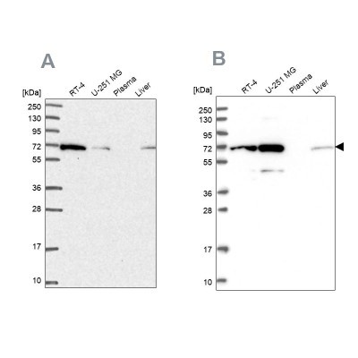 - Western Blot: IRGQ Antibody [NBP2-58334] - Analysis using Anti-IRGQ antibody NBP2-58334 (A) shows similar pattern to independent antibody NBP1-94049 (B).
