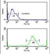 - Flow cytometry analysis of MCF-7 cells using an IRGQ polyclonal antibody (Product # PA5-24856) (bottom) compared to a negative control cell (top) at a dilution of 1:10-50, followed by a FITC-conjugated goat anti-rabbit antibody