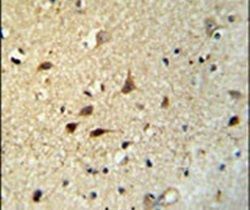 - Immunohistochemistry analysis in formalin-fixed, paraffin-embedded brain tissue using an IRGQ polyclonal antibody (Product # PA5-24856), followed by HRP-conjugated secondary antibody and DAB staining.
