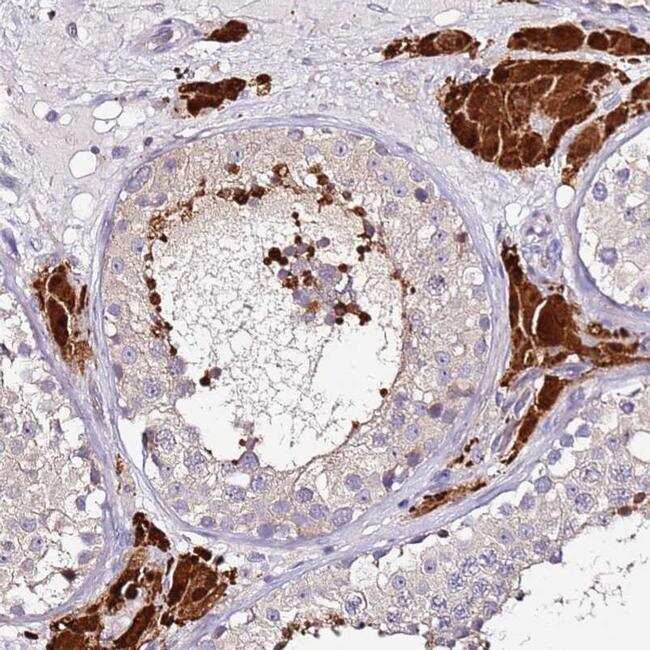 - Immunohistochemical analysis of SRRM5 in human testis using SRRM5 Polyclonal Antibody (Product # PA5-61501) shows strong cytoplasmic positivity in Leydig cells and subset of cells in seminiferous ducts.