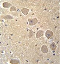 - Formalin fixed and paraffin embedded human brain tissue reacted with PPP4R4 Antibody (C-term) Cat.-No AP53405PU-N followed by peroxidase conjugation of the secondary antibody and DAB staining.