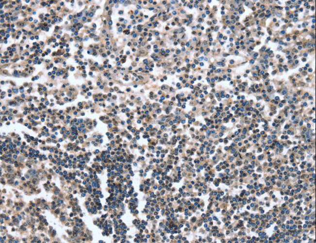 - Immunohistochemistry of paraffin-embedded Human tonsil using CAMTA1 Polyclonal Antibody at dilution of 1:15.