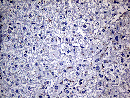 - Immunohistochemical staining of paraffin-embedded Human liver tissue within the normal limits using anti-FAM151B mouse monoclonal antibody.(Heat-induced epitope retrieval by 1mM EDTA in 10mM Tris buffer (pH8.5) at 120°C for 3 min, TA811466)(1:500)