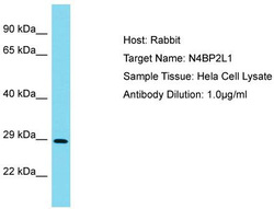 - Host: Rabbit; Target Name: N4BP2L1; Sample Tissue: Hela Whole Cell lysates; Antibody Dilution: 1.0 ug/ml