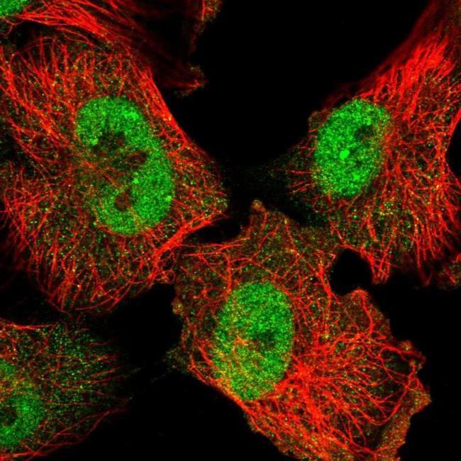 - Immunofluorescent staining of N4BP2L1 in human cell line U-251 MG shows positivity in nucleus but excluded from the nucleoli. Samples were probed using a N4BP2L1 Polyclonal Antibody (Product # PA5-58616).