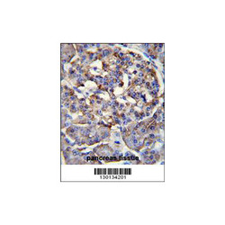 - LRRC68 Antibody (N-term) (Cat. #OAAB07437)immunohistochemistry analysis in formalin fixed and paraffin embedded human pancreas tissue followed by peroxidase conjugation of the secondary antibody and DAB staining.This data demonstrates the use of LRRC68 Antibody (N-term) for immunohistochemistry. Clinical relevance has not been evaluated.