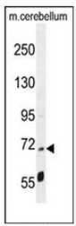 - Western blot analysis of LRRC68 Antibody (N-term) ?in mouse cerebellum tissue lysates (35ug/lane). This demonstrates the LRRC68 antibody detected the LRRC68 protein (arrow).