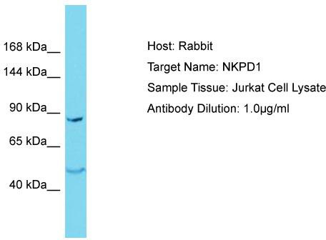 - Host: Rabbit; Target Name: NKPD1; Sample Tissue: Jurkat Whole Cell lysates; Antibody Dilution: 1.0 ug/ml