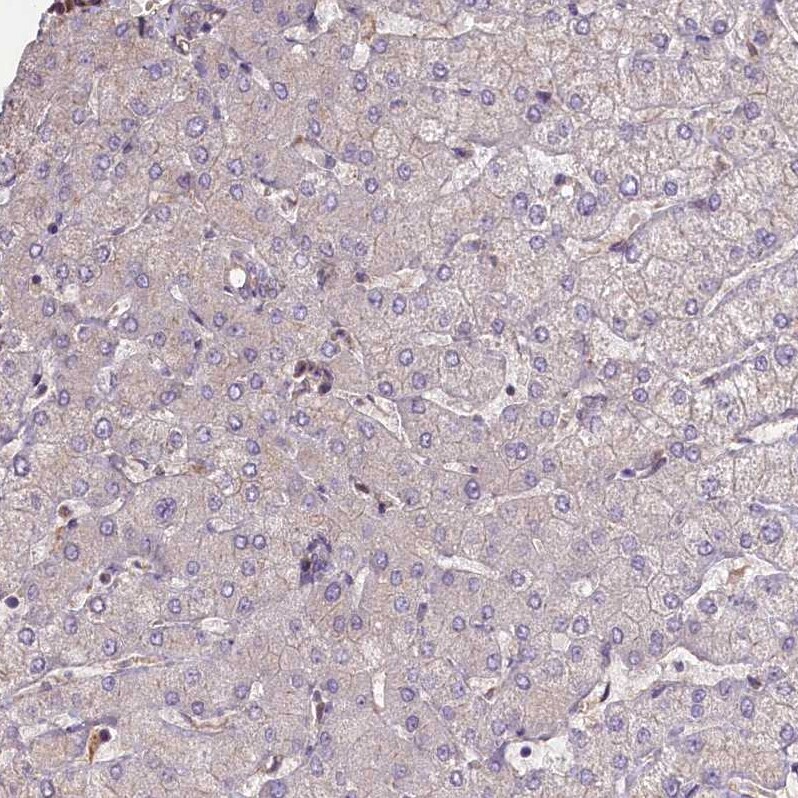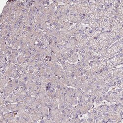 - Immunohistochemical analysis of FUZ in human liver using FUZ Polyclonal Antibody (Product # PA5-59724) shows no positivity in hepatocytes as expected.
