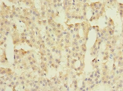 - Immunocytochemical analysis of paraffin-embeded FAM149B1 in human adrenal gland tissue using a FAM149B1 Polyclonal antibody (Product # PA5-113197) at a dilution of 1:100.