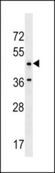 - ANKRD61 Antibody western blot of A549 cell line lysates (35 ug/lane). The ANKRD61 antibody detected the ANKRD61 protein (arrow).