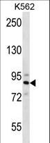 - STRN4 Antibody western blot of K562 cell line lysates (35 ug/lane). The STRN4 antibody detected the STRN4 protein (arrow).